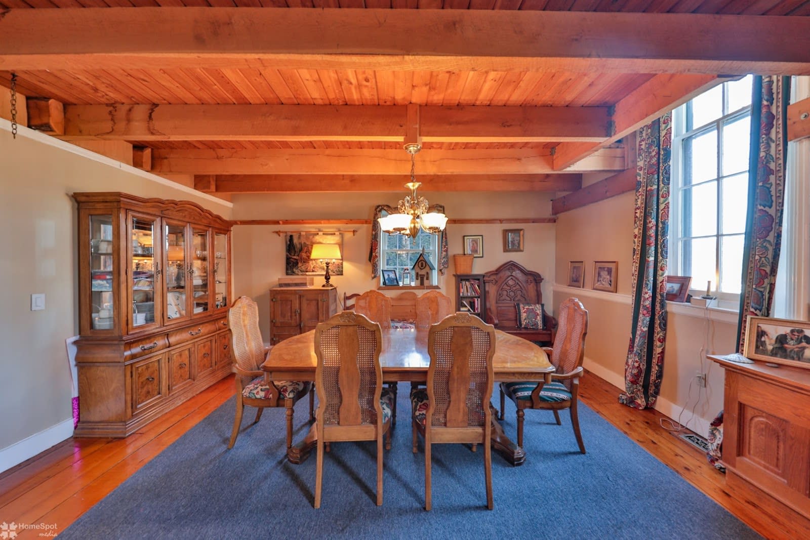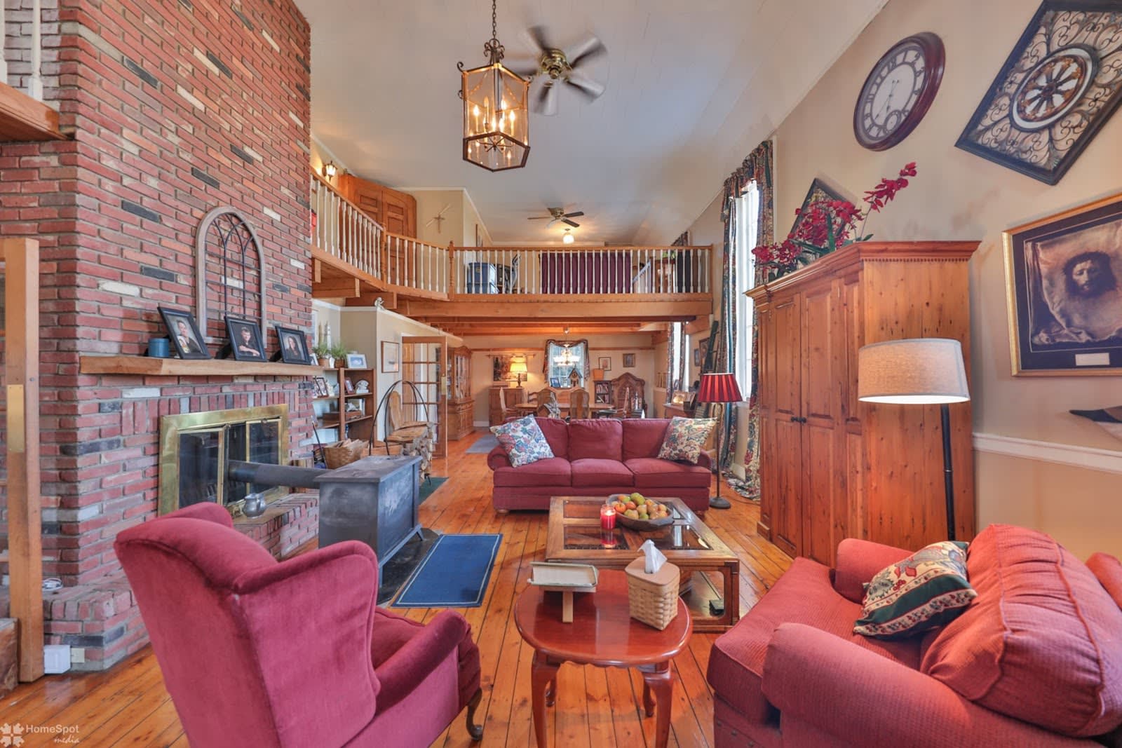 The 2,808-square-foot home includes an open-concept floor plan. There's pumpkin pine flooring throughout.